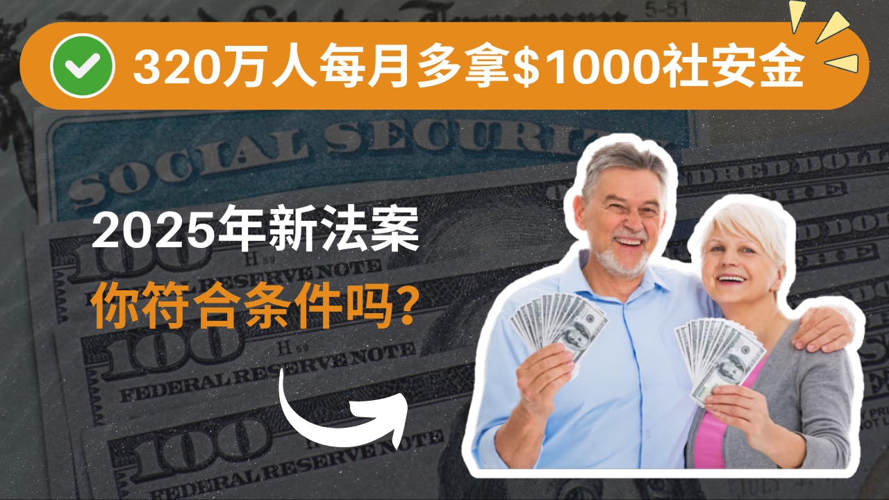 今年2025年的1月5号美国过了一项法案,能让超过320万人拿到更多美国社安金啦!本期菌菌就讲讲哪些人能拿到更多社安金?到底能多拿多少?以及具体该怎么做才能多拿?